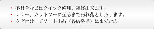 その他にもプレス、汚れ落とし、パッケージ、商品データ管理、タグ付け等、